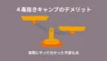キャンプでの出費を抑えるために、我が家で実践している節約術や4毒抜きキャンプ料理や工夫をまとめています。
